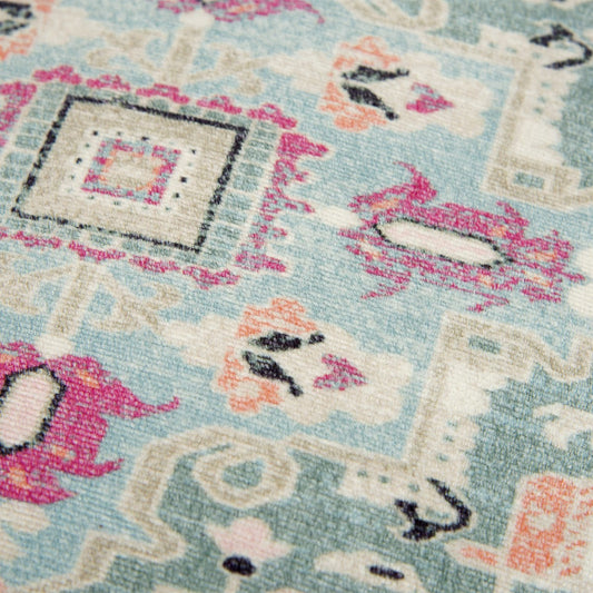 Beige Blue Distressed Floral Pattern Throw Pillow