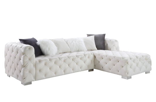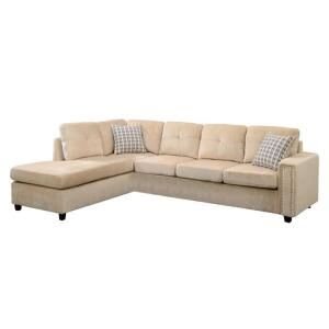 Beige Velvet Stationary L Shaped Sofa And Chaise