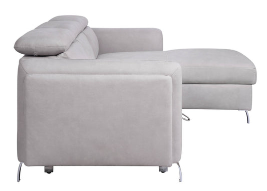 Beige Leather Sleeper L Shaped Two Piece Sofa and Chaise