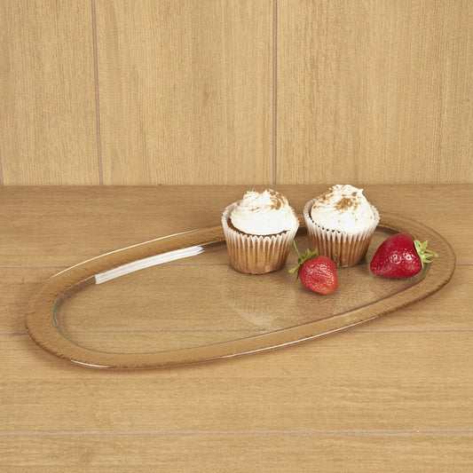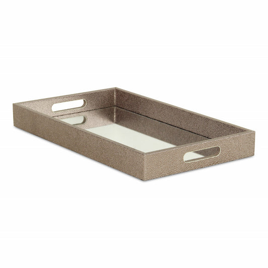 16" Gold Rectangular Wood Handmade Tray With Handles
