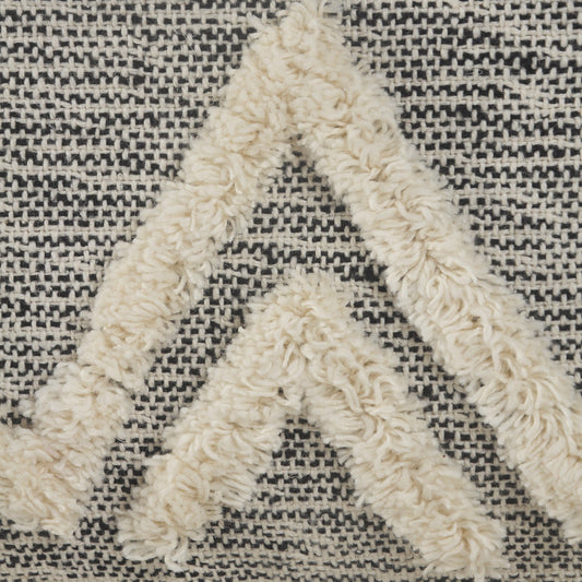 16" Gray and White and Black Upholstered Cotton Blend Bench
