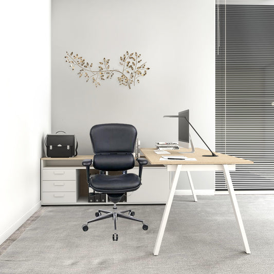 Black Faux Leather Seat Adjustable Executive Chair Metal Back Steel Frame
