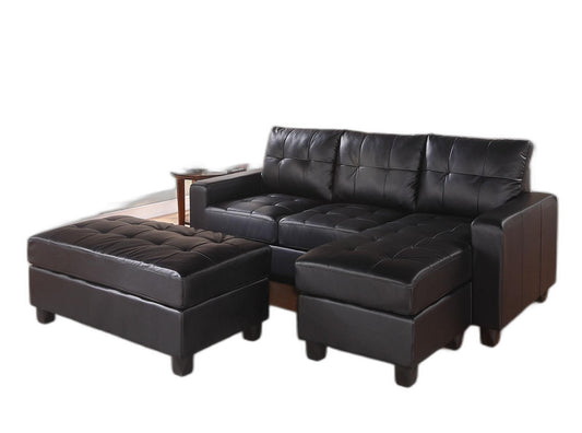 Black Faux Leather Stationary L Shaped Three Piece Sofa And Chaise
