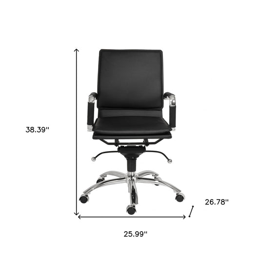 Black Faux Leather Seat Swivel Adjustable Task Chair Leather Back Steel Frame