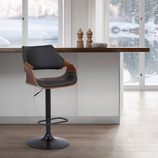 Black Faux Leather and Walnut Wood Adjustable Bar Stool
