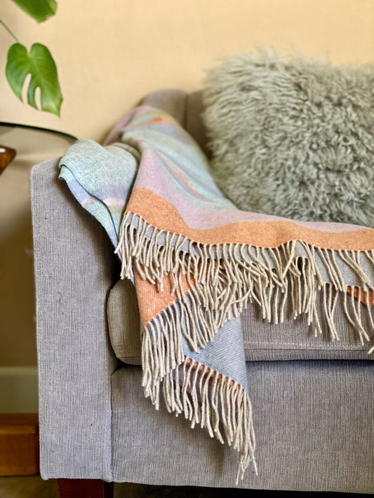 Blue and Pink Woven Cotton Striped Throw Blanket