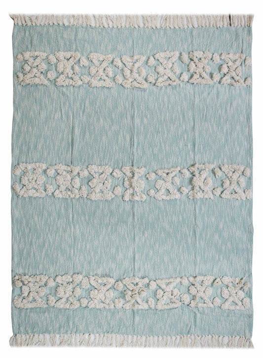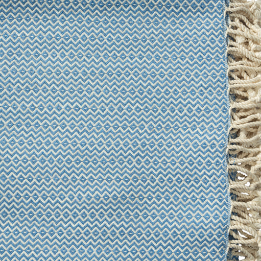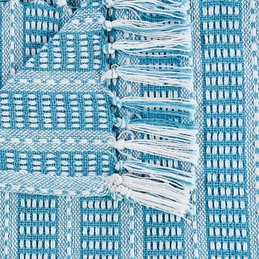 Blue and White Woven Cotton Solid Color Throw Blanket