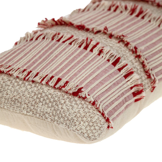 Bohemian White Cotton Accent Pillow With Blush Tassel Details