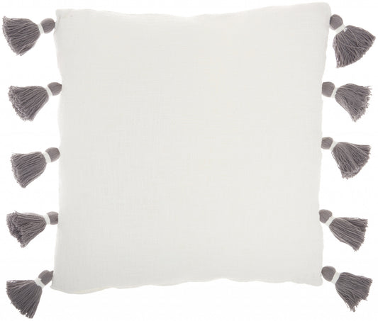 Bohemian White Cotton Accent Pillow With Grey Tassel Details
