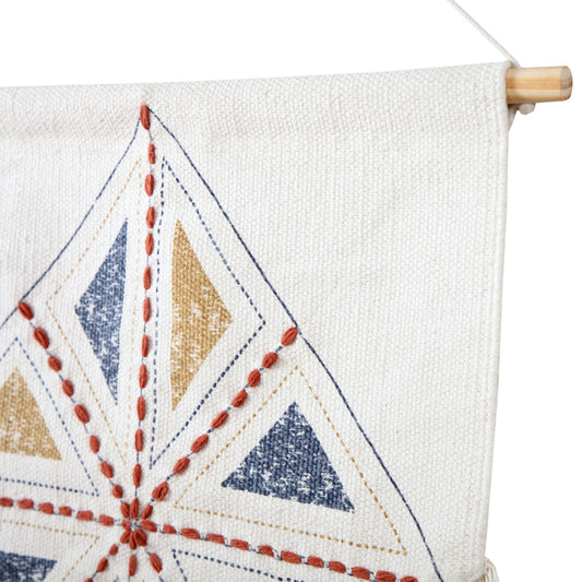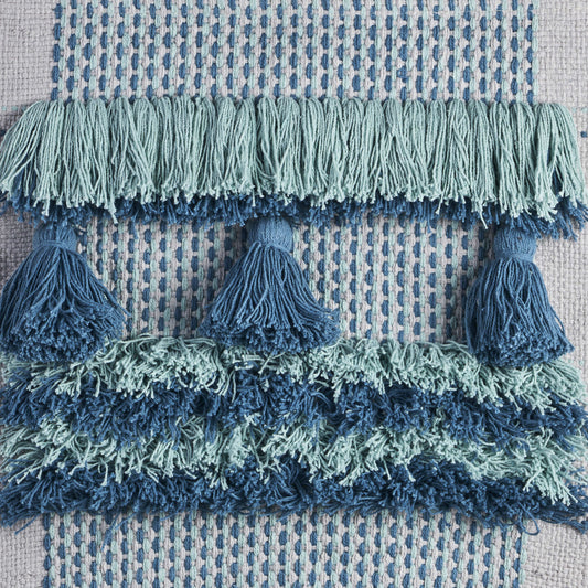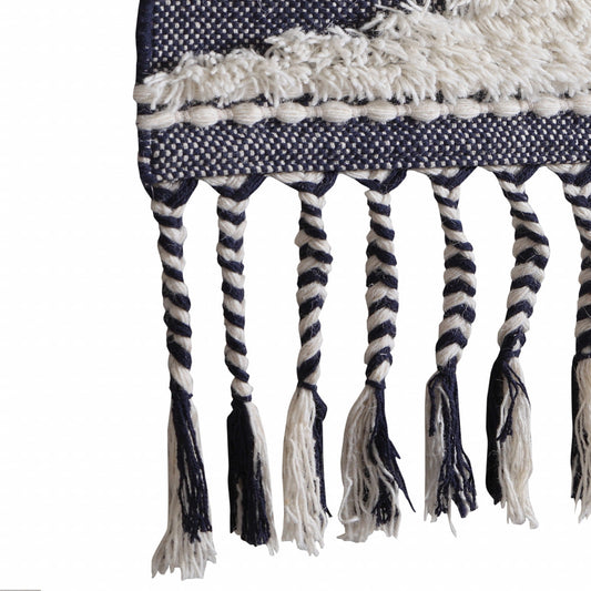 Bohemian White Cotton Accent Pillow With Blue Tassel Details