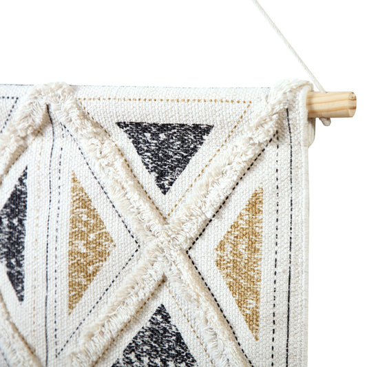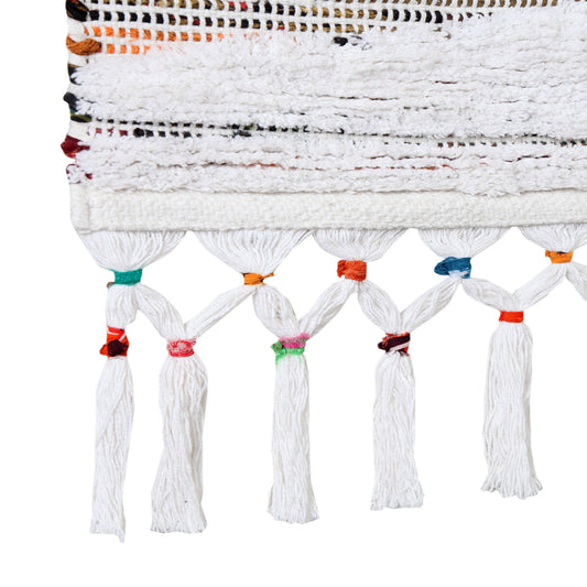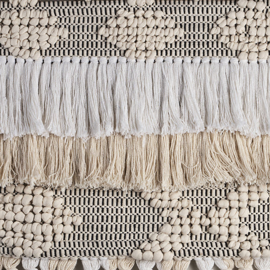 Boho Beige and Black Handloom Weave Throw with Decorative Tassels