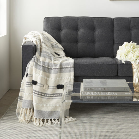 Boho Tribal Black Gray Ivory Cotton Accent Throw Blanket
