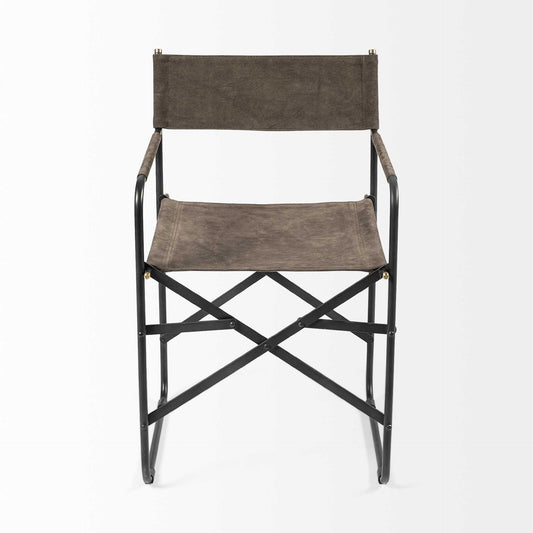 Brown Leather Unibody Seat Accent Chair With Black Metal Frame