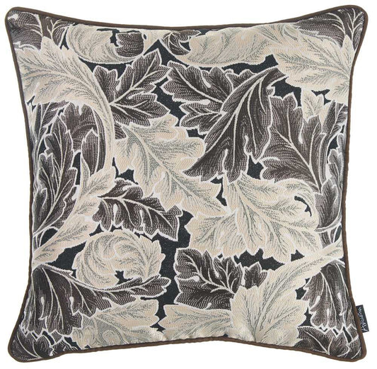 Brown Taupe White Jacquard Leaf Decorative Throw Pillow Cover