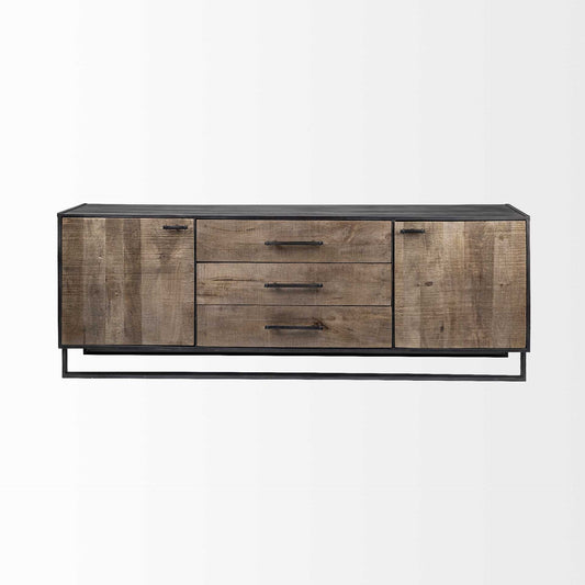 Brown Solid Mango Wood Finish Sideboard With 3 Drawers And 2 Cabinet Doors