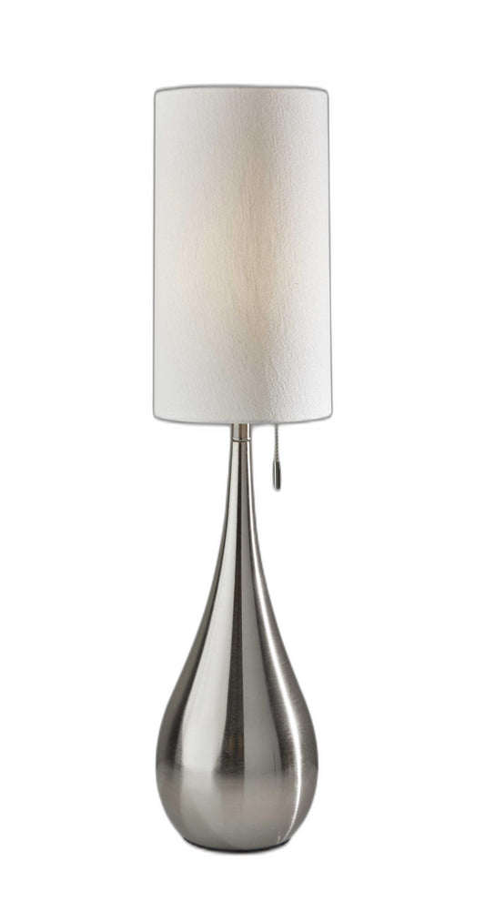 Brushed Steel Metal Stout Pole With Tall Silk Shade Table Lamp