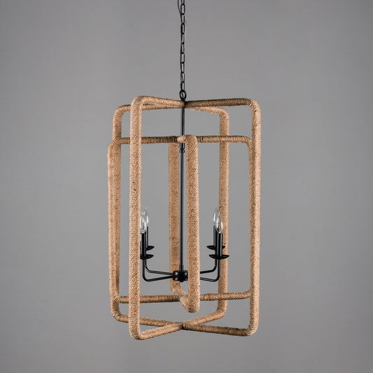 Chandelier Four Light Hemp And Glass Dimmable Semi-Flush Ceiling Light