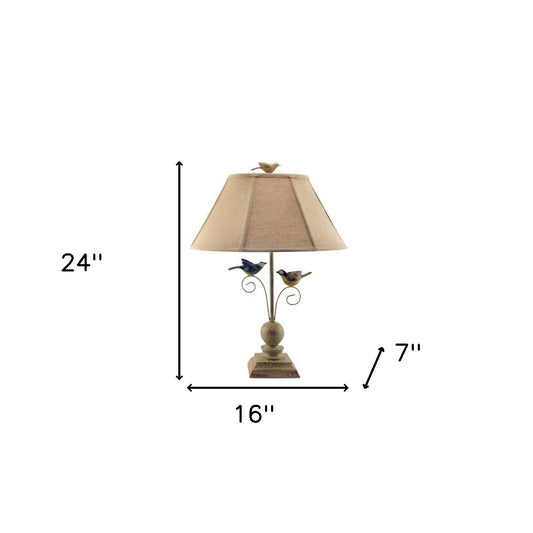 Cheerful Taupe Base Table Lamp With 3D Colorful Birds
