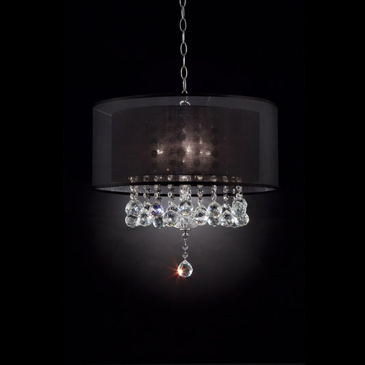 Contempo Silver Ceiling Lamp with Black Shade and Crystal Accents