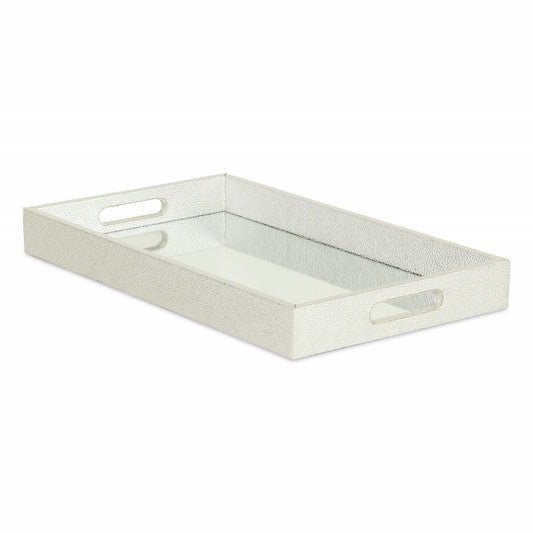 16" Silver Rectangular Wood Handmade Tray With Handles