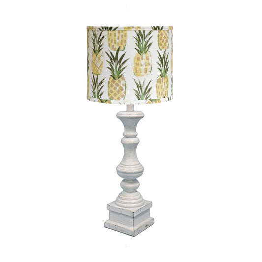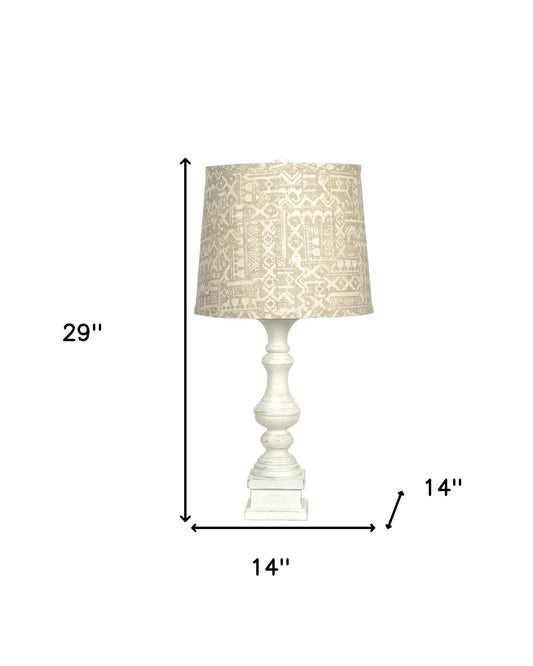 Distressed Whitewash Beige Batik Shade Table Lamp