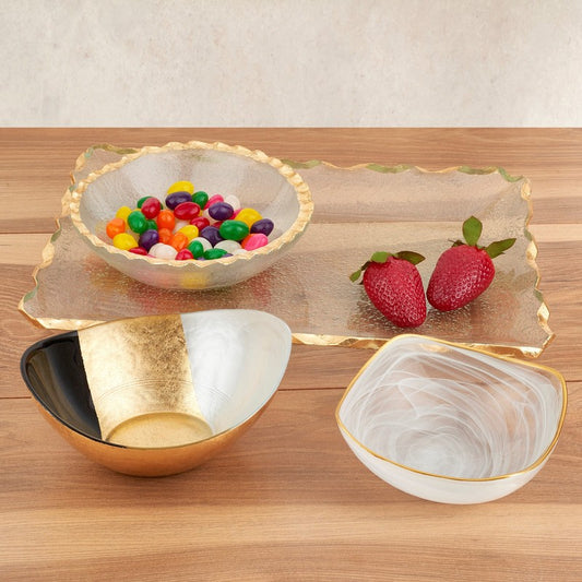 Gold Black And White Oval Glass Bowl