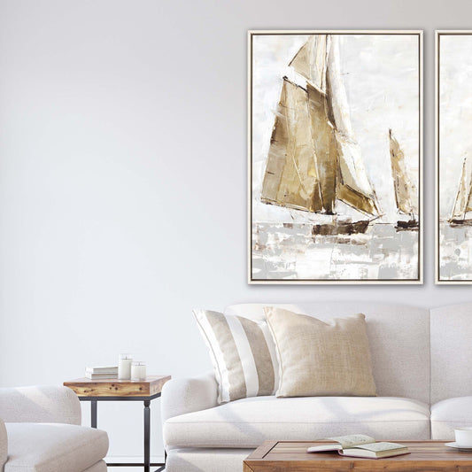 Golden Sails II Canvas White Floater Frame Large Wall Art