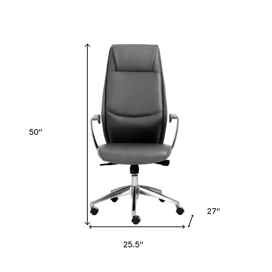 Gray Faux Leather Tufted Seat Swivel Adjustable Executive Chair Leather Back