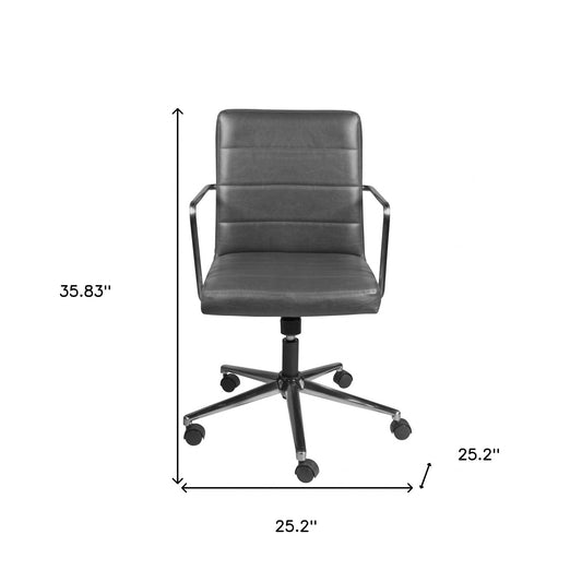 Gray Faux Leather Seat Swivel Adjustable Task Chair Leather Back Steel Frame