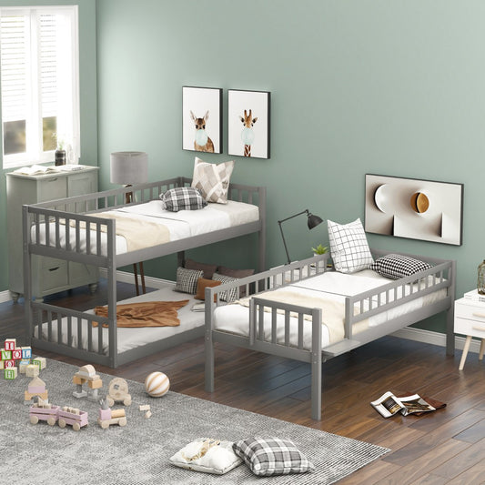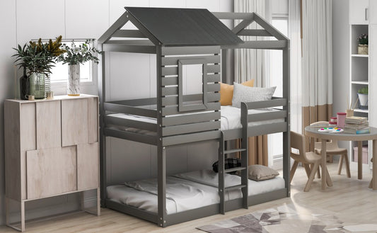 Gray Twin Over Twin PlayHouse Perpendicular Bunk Bed with Slide