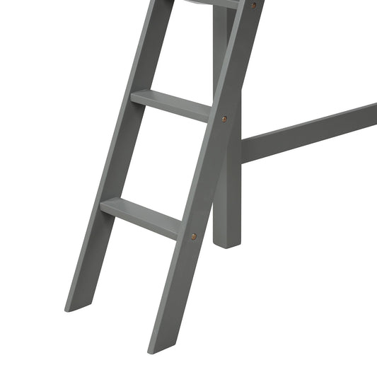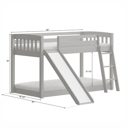 Gray Twin over Twin Solid Wood Bunk Bed With Slide and Ladder