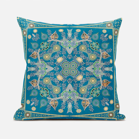 16" X 16" Aqua and Gold Broadcloth Paisley Zippered Pillow