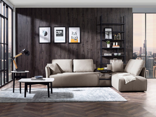 Light Gray Polyester Modular L Shaped Two Piece Sofa and Chaise Sectional