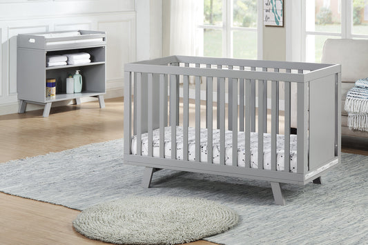 Light Gray Solid and Manufactured Wood Standard Three In One Convertible Crib