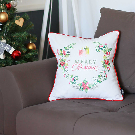 Merry Christmas Wreath Square Decorative Throw Pillow Cover
