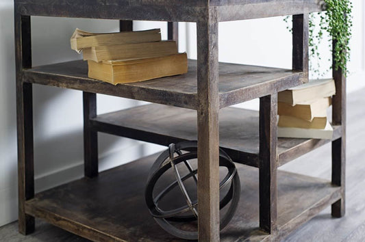 Medium Brown Wooden Square Top End Table With Multi-Shelf