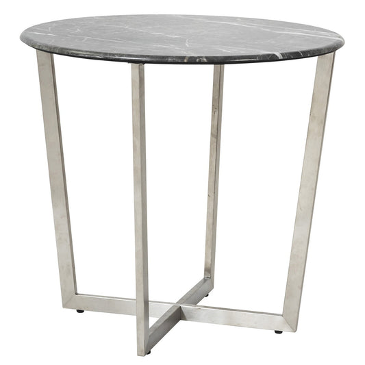 Mod Geo Chrome and Black Round Faux Marble Side Table