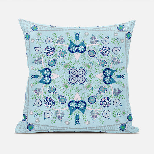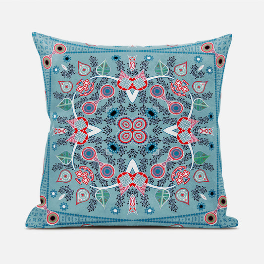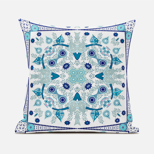 16" X 16" Blue And White Paisley Zippered Suede Throw Pillow