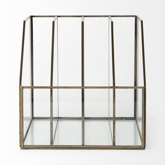 Modern Rustic Gold Metal And Glass File Holder