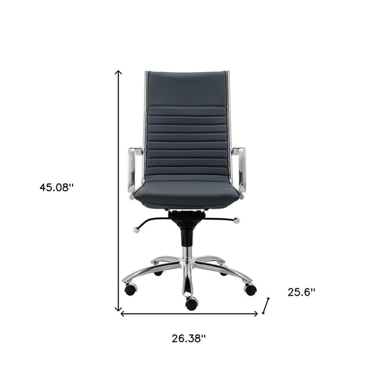 Navy Blue and Silver Adjustable Swivel Faux Leather Rolling Executive Office Chair