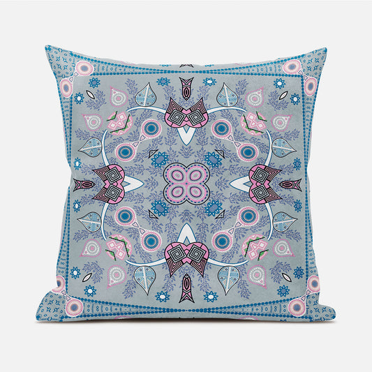 16" X 16" Gray And Pink Paisley Zippered Suede Throw Pillow