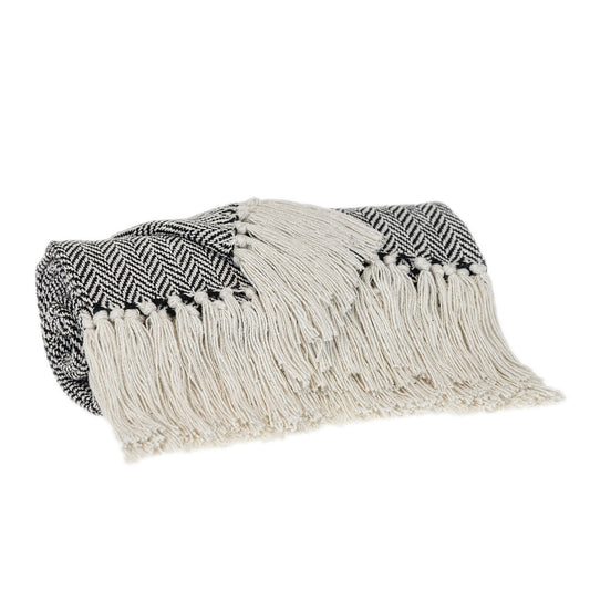 Parkland Collection Transitional Herringbone Black Rectangle 50" x 60" Throw