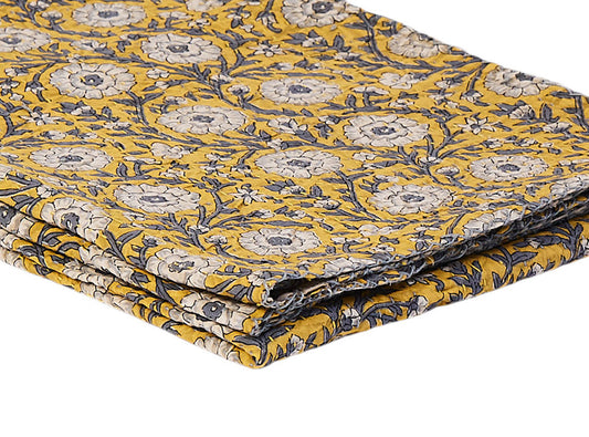 Purple and Yellow Kantha Cotton Floral Throw Blanket