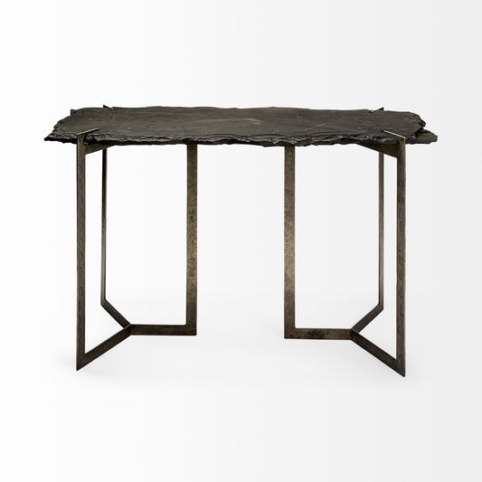 Rectangular Black Live Edge Slate Console Table With Double Pedestal Base