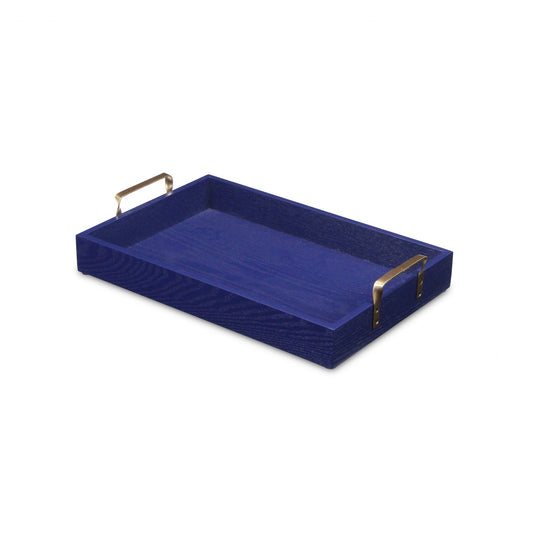 Royal Blue Wooden Tray with Gold Handles