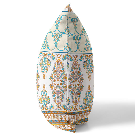 16" X 16" Pink And White Paisley Zippered Suede Throw Pillow