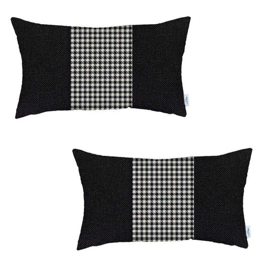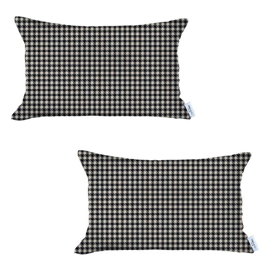 Set Of 2 Black Houndstooth Lumbar Pillow Covers