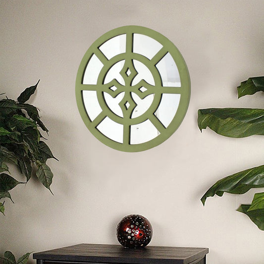 16" X 16" X 1" Green Rustic Mirrored Round - Wooden Wall Decor