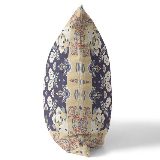 16" X 16" Yellow And Navy Floral Zippered Suede Throw Pillow