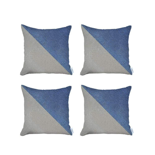 Set Of Four 18" X 18" Blue And Grey Geometric Zippered Handmade Polyester Throw PillowRegular price $118.93 USDRegular priceUnit price / per-